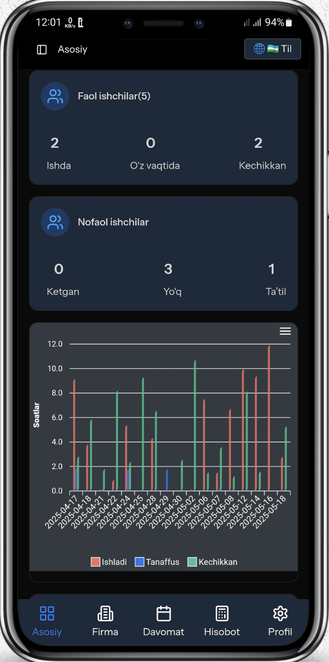 PayDay yuzning unikal biometrik parametrlariga asoslangan jismoniy shaxslarning haqiqiy identifikatsiyasi va davomat malumotlaridan online tarzda foydalanish imkoniyatini taqdim etadi.